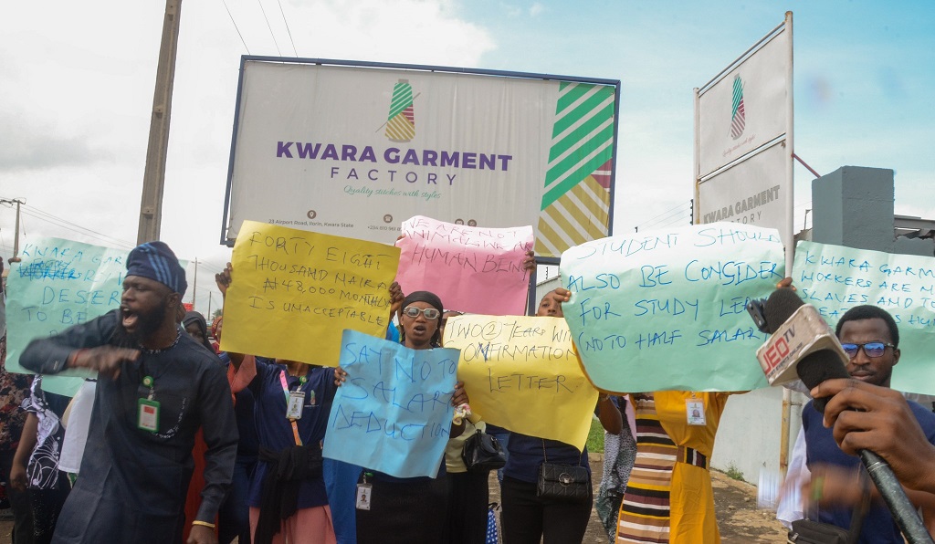 Workers at the Kwara State Garment Factory staged a peaceful protest in Ilorin on Monday to demand immediate intervention regarding what they termed poor working conditions and unfair employment practices.